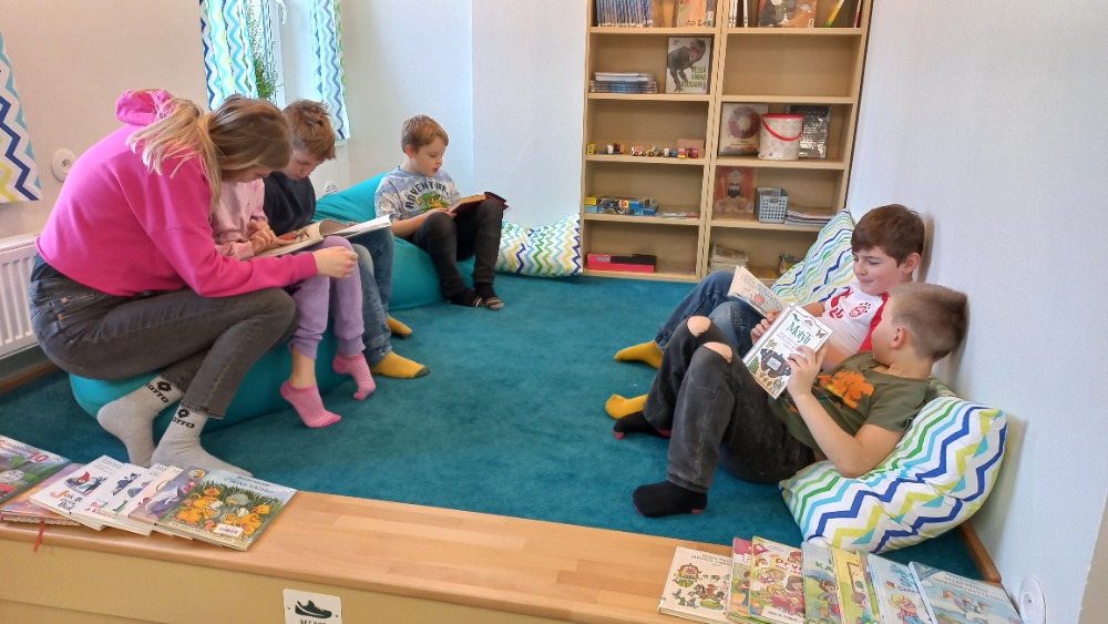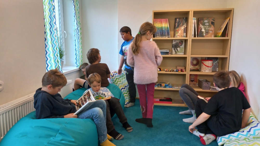 Dnešní hodinu literatury strávili žáci 6. třídy s p. uč. Šibravovou v městské knihovně.