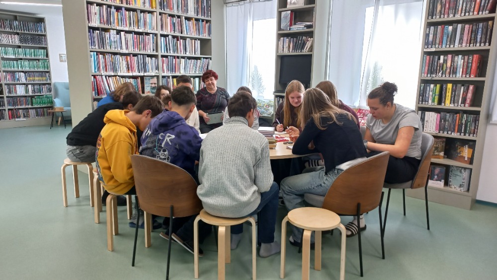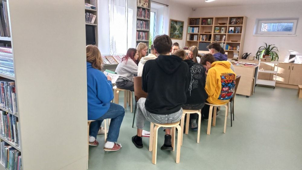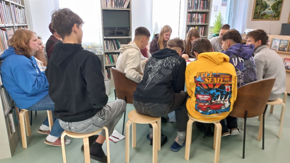 Dnešní hodinu českého jazyka strávili žáci 8. třídy s p. uč. Pavlovičovou v městské knihovně. Jejich hlavním úkolem bylo vybrat si vhodnou básničku do recitační soutěže.