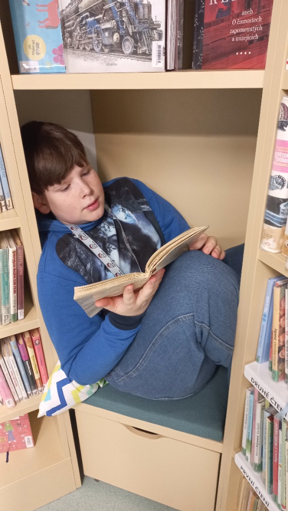 Dnešní hodinu českého jazyka strávili žáci 8. třídy s p. uč. Pavlovičovou v městské knihovně. Jejich hlavním úkolem bylo vybrat si vhodnou básničku do recitační soutěže.