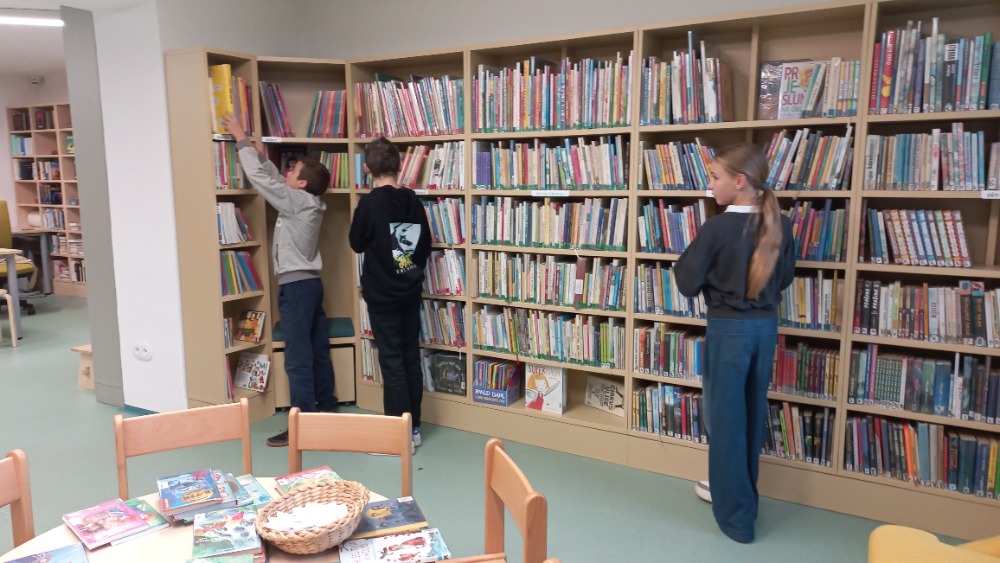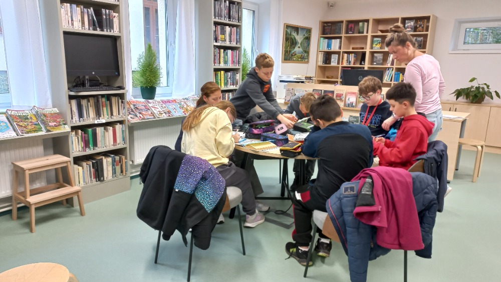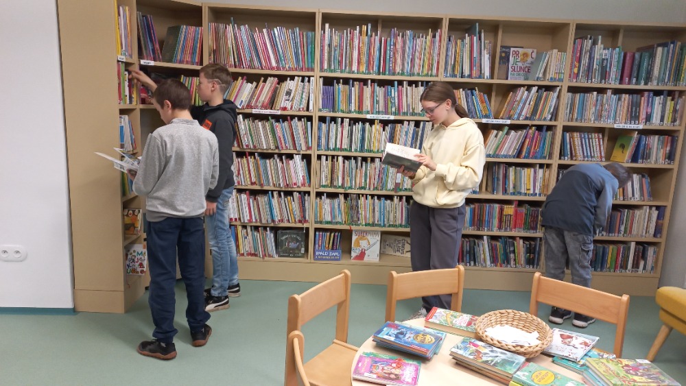 Dnešní hodinu literatury strávili žáci 6. třídy s p. uč. Šibravovou v městské knihovně.