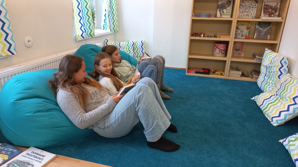 Účastníci příměstského tábora zavítali včera při své vesmírné misi do městské knihovny :-).