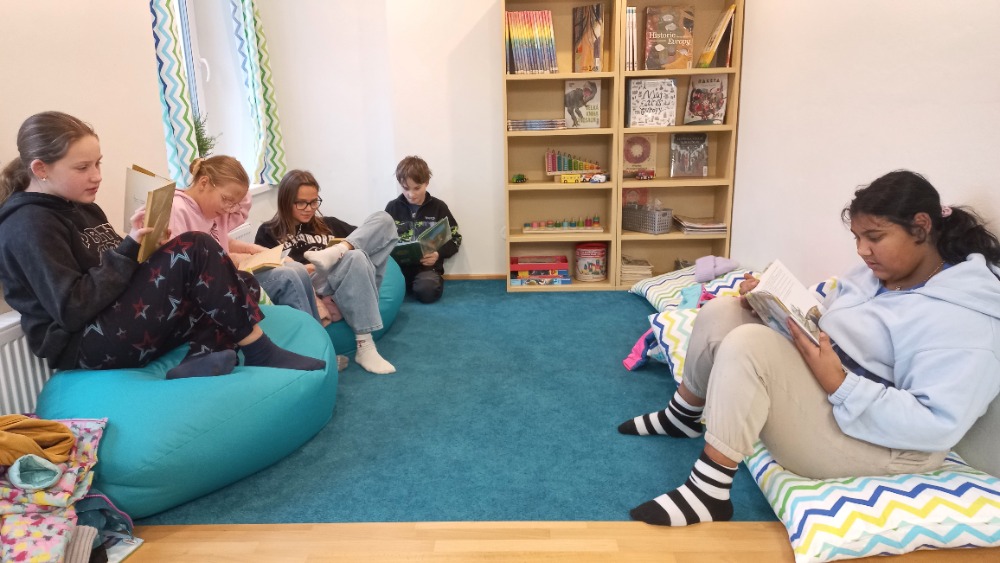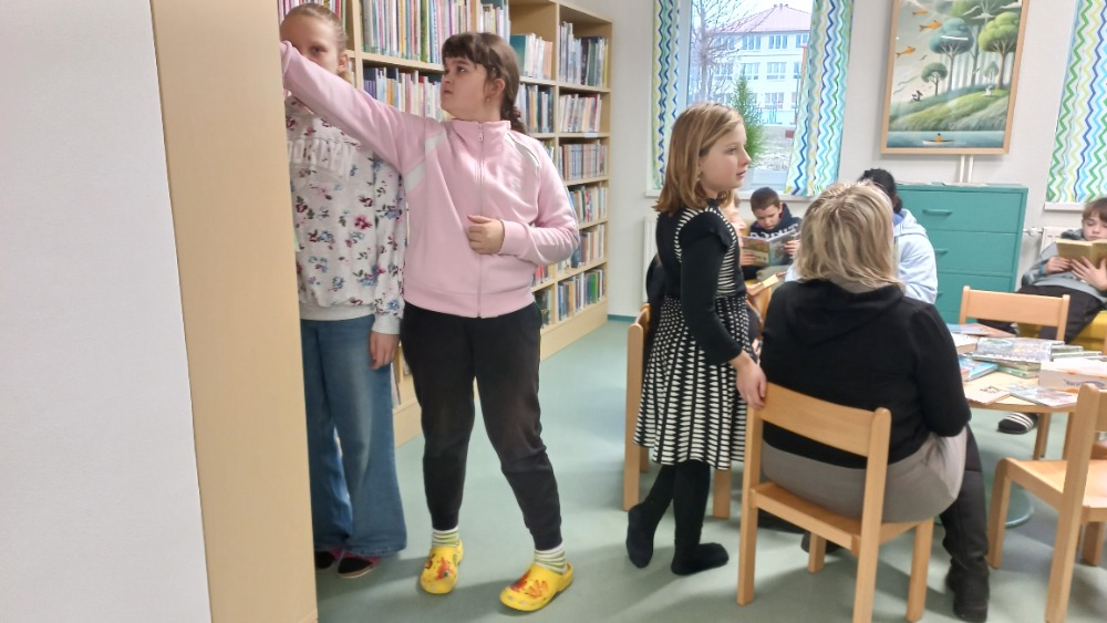 Dnešní hodinu českého jazyka strávili žáci 6. třídy s p. uč. Zvárovou v městské knihovně. Jejich hlavním úkolem bylo vybrat si vhodnou básničku do recitační soutěže.