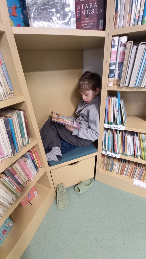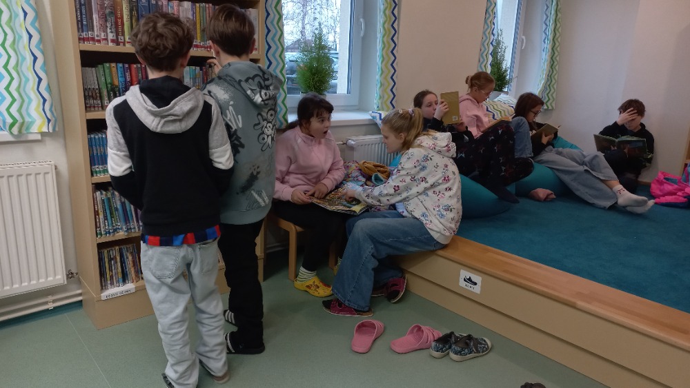 Dnešní hodinu českého jazyka strávili žáci 8. třídy s p. uč. Pavlovičovou v městské knihovně. Jejich hlavním úkolem bylo vybrat si vhodnou básničku do recitační soutěže.