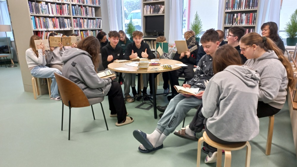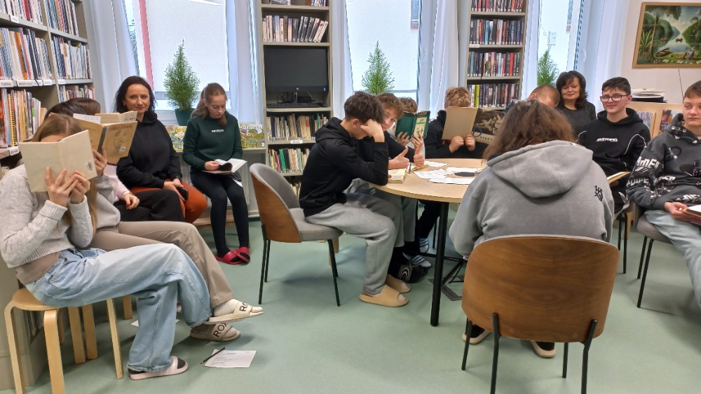 Dnešní hodinu českého jazyka prožili žáci 8. třídy s p. uč. Jílkovou v městské knihovně. Jejich hlavním úkolem bylo vybrat si vhodnou básničku do recitační soutěže.